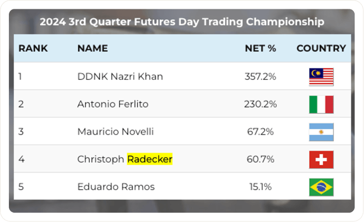 +97,3 % in 90 Tagen – 2. Platz, World Cup Trading Championship (Futures) 2022