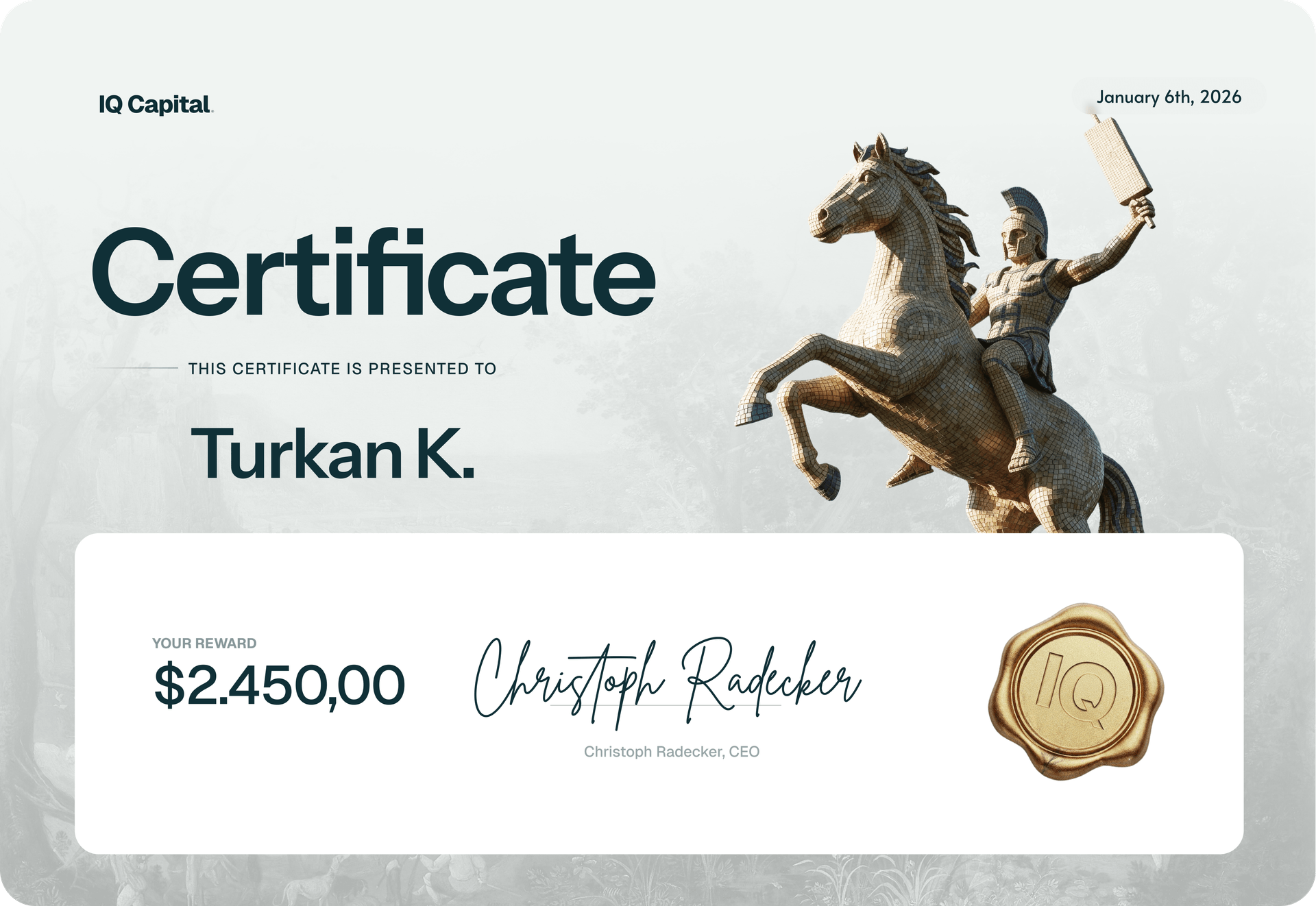 received his first trading payout with IQ Capital