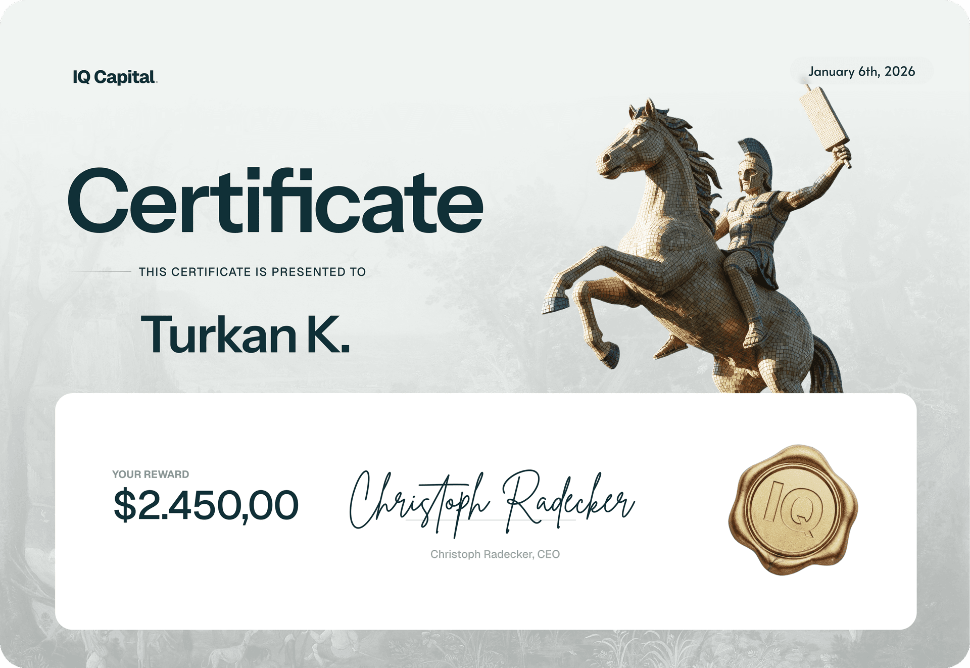 Two big Payouts in just three months - Turkan K. joined IQ Capital in September after discovering us through Bitbull.